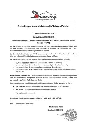 APPEL À CANDIDATURES - Avis aux associations Renouvellement du conseil d’administration du CCAS