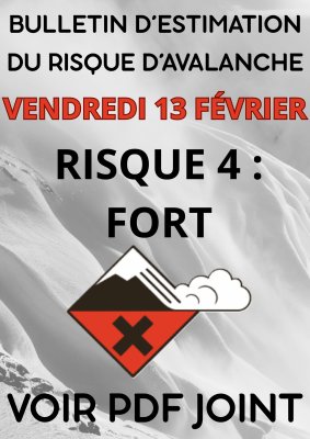 a a RISQUE FORT D’AVALANCHES VENDREDI 13 FÉVRIER